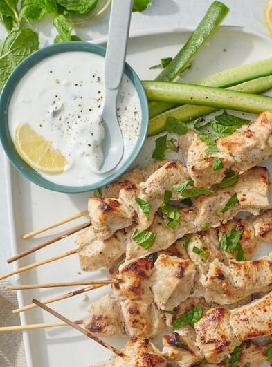 • Let kids mix the raita ingredients or help thread chicken onto skewers (with supervision).