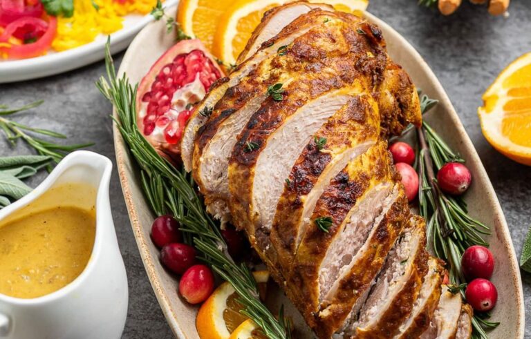 Instead of traditional cranberry sauce, this turkey is served with a simple Apple Apricot Chutney. The natural sweetness of the fruit balances the warm spices beautifully and really elevates the entire dish. It’s a great option for Thanksgiving, holiday gatherings, or anytime you want a standout turkey recipe that’s anything but ordinary.
