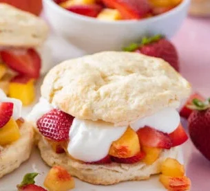 Juicy strawberries, ripe peaches, and honey-vanilla yogurt layered between tender, buttery shortcakes — this is summer dessert at its best. Light, fluffy, and just sweet enough, Peach & Strawberry Shortcakes deliver the perfect balance of fresh fruit and soft biscuit texture in every bite.